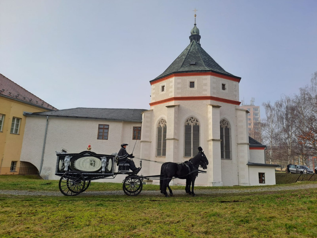Nabízíme možnost využít pohřební kočár, který zajišťuje a vlastní pohřební ústav Josef Kňourek. Tento elegantní a jedinečný kočar nabízíme jako důstojný způsob, jak se rozloučit s milovanými osobami.